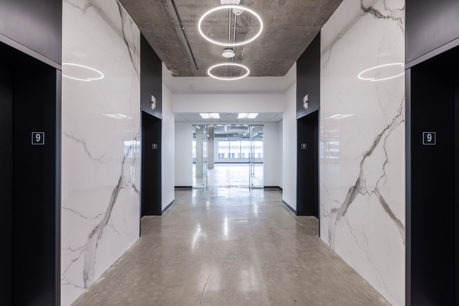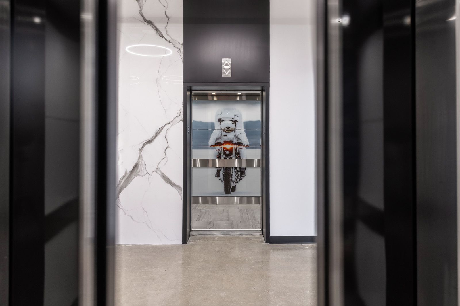 To bring a well-loved building into the future, the most impactful changes are always found in updated shared spaces. Redesigned lobbies, amenity spaces, and outdoor areas are important, but we feel that a remodel is most complete and noticeable when focus is given to the smaller circulation areas, places where users are spending moments of every single day. As a piece of 310 S Main Tower’s major updates, we were asked to zero in on their elevators, and work to make them as unique, beautiful, and experiential as the rest of the building.