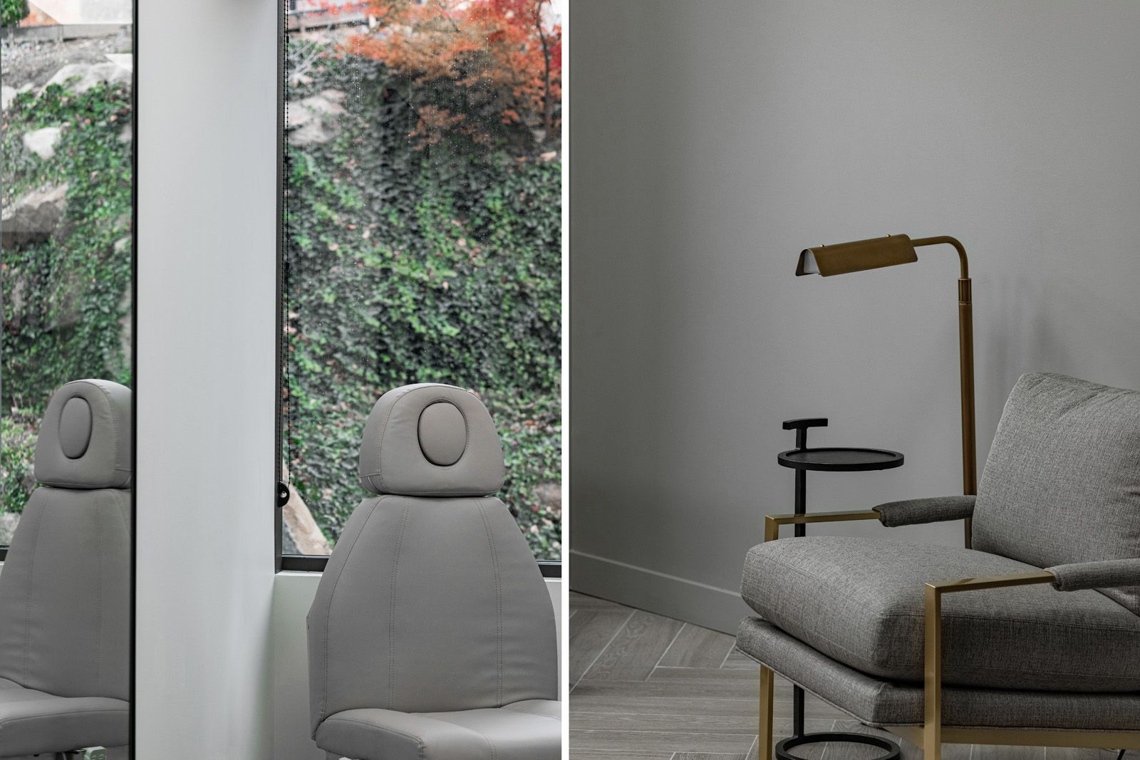 When selecting furniture, we began with the essential functional equipment required for the clinic. Operating tables and workstations were chosen in the same cool-toned greys that characterize the office's aesthetic. For all other furniture, we sought pieces that that would embody peak design while maintaining a touch of comfort.