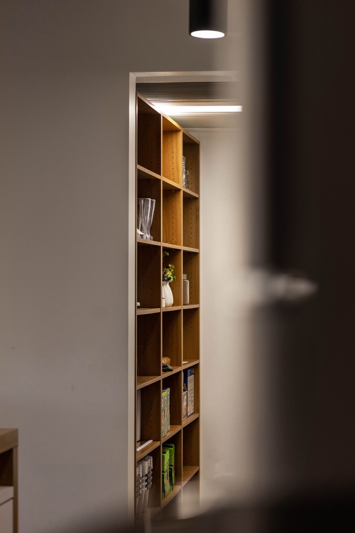 Our team first met the space when given the task of designing a spec suite to fill it. Its original state was one of generations of remodels, with layers upon layers of unremarkable materials weighing it down. Following our instinct to simplify, we stripped away excess and uncovered the superb original modernist structure of the space. To achieve a functional simplicity, we moved the mechanical systems towards the core of the space and encased the zone with rich wood slats, freeing up the rest of the space and creating breathtakingly high ceilings of the original concrete structure.