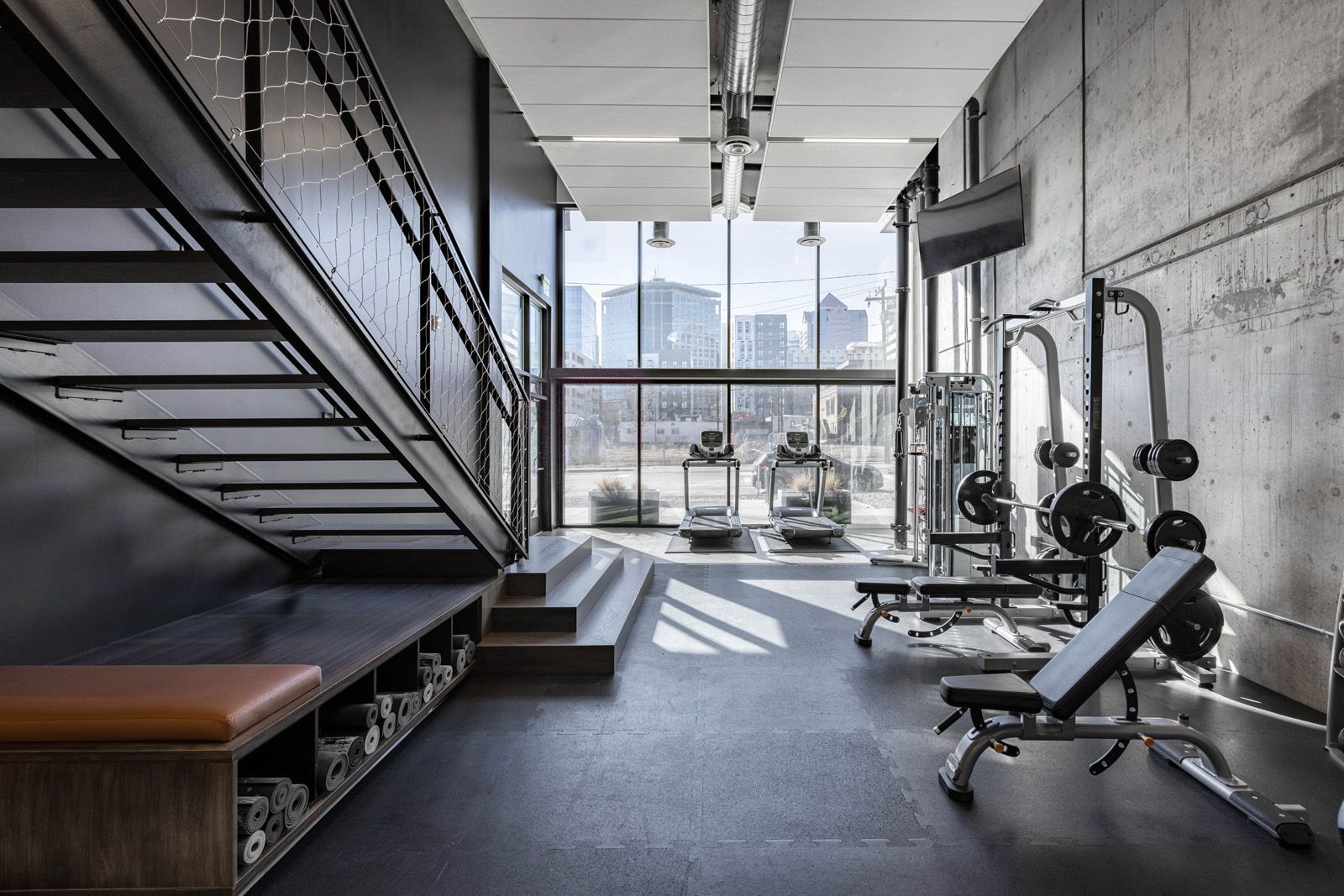 On the second floor, stationary bikes are positioned in a way that offers a truly spectacular view of the Salt Lake City skyline. Residents can take the second-floor elevators straight home after their workouts, making it easy to seamlessly integrate fitness into their daily routines.